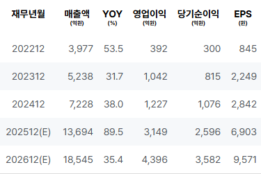 2025년의 예상 매출과 순이익이 전년 대비 매우 높은 증가율을 기록할 것으로 보여, 향후 실적 향상에 대한 기대감이 큽니다. 특히, 영업이익의 성장은 기업이 운영 효율성을 높이고 있다는 강력한 신호로 해석됩니다. ROE 역시 상당히 높아, 투자자들의 긍정적인 반응을 이끌어낼 가능성이 높습니다. |