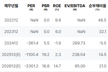 2025년 데이터에 의하면, PBR 지표가 매우 높아 기업의 시장 가치가 장기적으로는 과대 평가될 수 있음을 시사합니다. ROE 수치 또한 낮은 수준에 머무르고 있어 자본 효율성에 문제가 있음을 나타냅니다. 이러한 지표들은 투자자에게 신중한 접근을 요구합니다. |