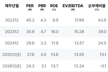 2026년도에 대한 예측치는 매출과 영업이익이 지속적으로 증가할 것으로 전망되며, 순이익 또한 긍정적인 상승세를 이어갈 것으로 예상됩니다. PER과 PBR은 지속적으로 개선되며, 이는 기업의 내재 가치를 반영하는 신호로 해석할 수 있습니다. 결국, 이러한 펀더멘탈 지표가 긍정적으로 변화함에 따라 투자자들의 신뢰도가 높아질 것이며, 주가에도 긍정적인 영향을 미칠 것으로 기대됩니다. |