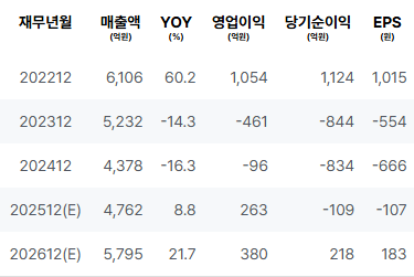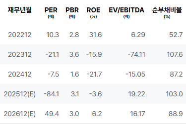 2025년 이전의 펀더멘탈 분석에 따르면, 2022년에는 매출 및 순이익이 긍정적인 결과를 보였습니다. 그러나 2023년에는 모든 주요 수치가 부정적으로 전환되어 영업이익과 순이익 모두 적자가 발생하였습니다. 2024년에도 이러한 추세가 이어지며, 매출과 순이익 모두 컨디션이 악화되었습니다. |