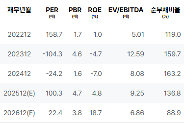 2025년 이전 데이터에 따르면, 매출은 증가했으나 영업이익과 순이익은 감소세를 보였습니다. 특히, 2023년의 순이익은 매우 적은 수준으로, 전체적인 수익성에 부정적인 영향을 미쳤습니다. 또한, ROE는 마이너스를 기록하며 자본 효율성이 감소하였습니다. |