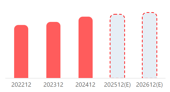 2025년 예측 데이터에 따르면, 매출은 계속해서 증가할 것으로 보이나 영업이익과 순이익의 증가폭은 상대적으로 미미할 것으로 예상됩니다. 이는 기업의 수익성이 다소 저조할 수 있음을 나타냅니다. |