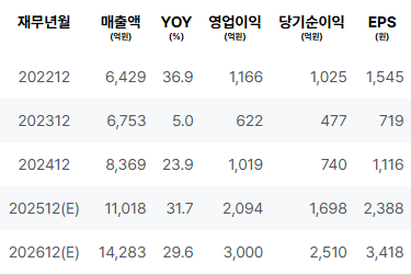 출처에 따른 수치 분석 결과, 2025년 대비 2026년 성장성은 긍정적인 방향으로 볼 수 있습니다. 매출이 계속해서 증가할 것으로 예상되며 영업이익과 순이익 또한 상승할 것으로 고려됩니다. 다만, PER와 PBR의 수치 상승이 지속될 경우 주식의 밸류에이션 측면에서 문제가 될 수 있으므로, 주의가 필요합니다. |