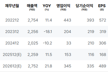 2025년 이전인 2024년에는 매출과 순이익 모두 감소세를 보였으며, 영업이익은 현저히 낮아지는 상황이었습니다. 이러한 추세는 투자자들에게 우려를 안겼을 것입니다. 2023년에는 매출이 감소하면서 수익성 또한 줄어들었고, ROE 지표도 크게 하락하여 투자매력이 감소하였습니다. |