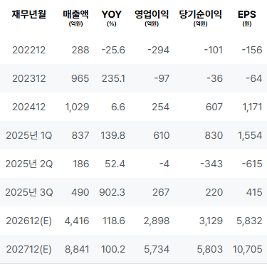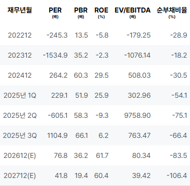 2022년과 2023년에는 손실을 기록하였으나, 2024년부터 실적이 개선되기 시작하였고 영업이익과 순이익이 흑자로 전환되었습니다. 2025년 1분기에는 안정적인 매출 성장세가 보였으나 2분기에는 다시 손실이 발생하여 불확실성이 존재합니다. 2025년에는 전반적으로 안정적인 영업이익 및 순이익이 예상되며, 2026년에는 더욱 강력한 성장과 재무 개선이 기대됩니다. 따라서 향후 전망이 매우 긍정적이며 실적의 안정성에 주목할 필요가 있습니다. 2025년에는 EPS 및 PER의 개선도 기대되며, 향후 배수 분석에서도 긍정적인 평가가 이루어질 것입니다. |