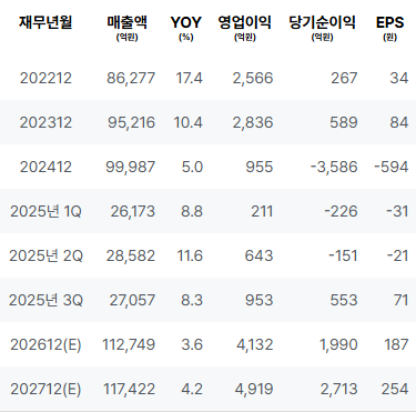 2022년부터 현재까지의 수익성과 재무 상태는 회복세를 보이고 있으며, 2026년과 2027년의 예상 실적은 긍정적인 방향으로 나아갈 것으로 보입니다. 그러나 2024년에는 실적이 악화되었으며, 2025년의 흐름에 따라 불확실성이 존재합니다. |