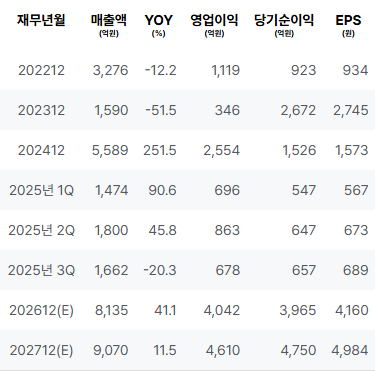 2026년에는 매출 및 영업이익의 대폭적 성장이 예상되며, ROE 역시 높은 수준을 유지할 것입니다. PER과 PBR은 다소 높은 평가를 보이고 있으나, 수익성이 이를 정당화할 충분한 여지가 있다고 판단됩니다. |