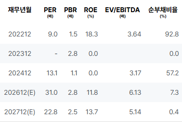 2027년 매출과 영업이익이 모두 증가할 것으로 예상됨에 따라, 순이익도 증가할 것으로 보입니다. EPS 또한 향상될 가능성이 큽니다. PER과 PBR은 여전히 주의를 요하며, ROE는 개선될 것으로 판단됩니다. |