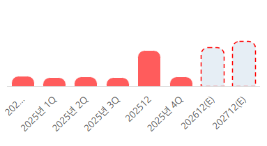 2027년(E) 매출이 더욱 증가하며, 영업이익과 순이익 또한 큰 폭으로 개선될 것으로 예상됩니다. 이는 장기적인 성장세를 반영합니다. 모든 지표가 긍정적인 변화를 예상하고 있습니다. |